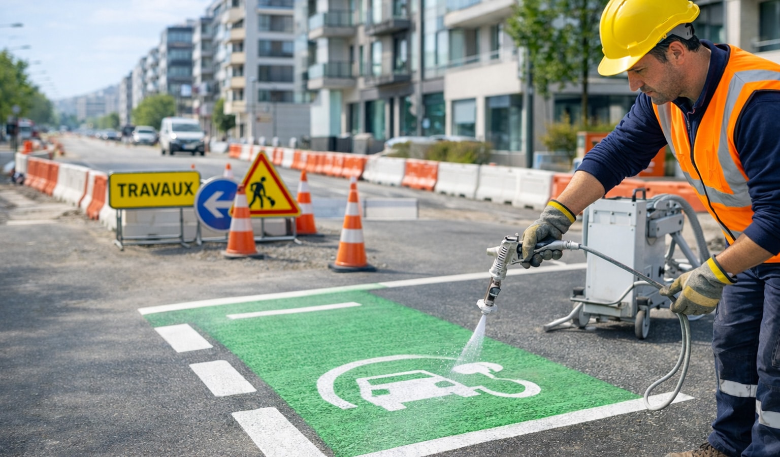 Des marquages nets, des panneaux clairs, une pose dans les règles :